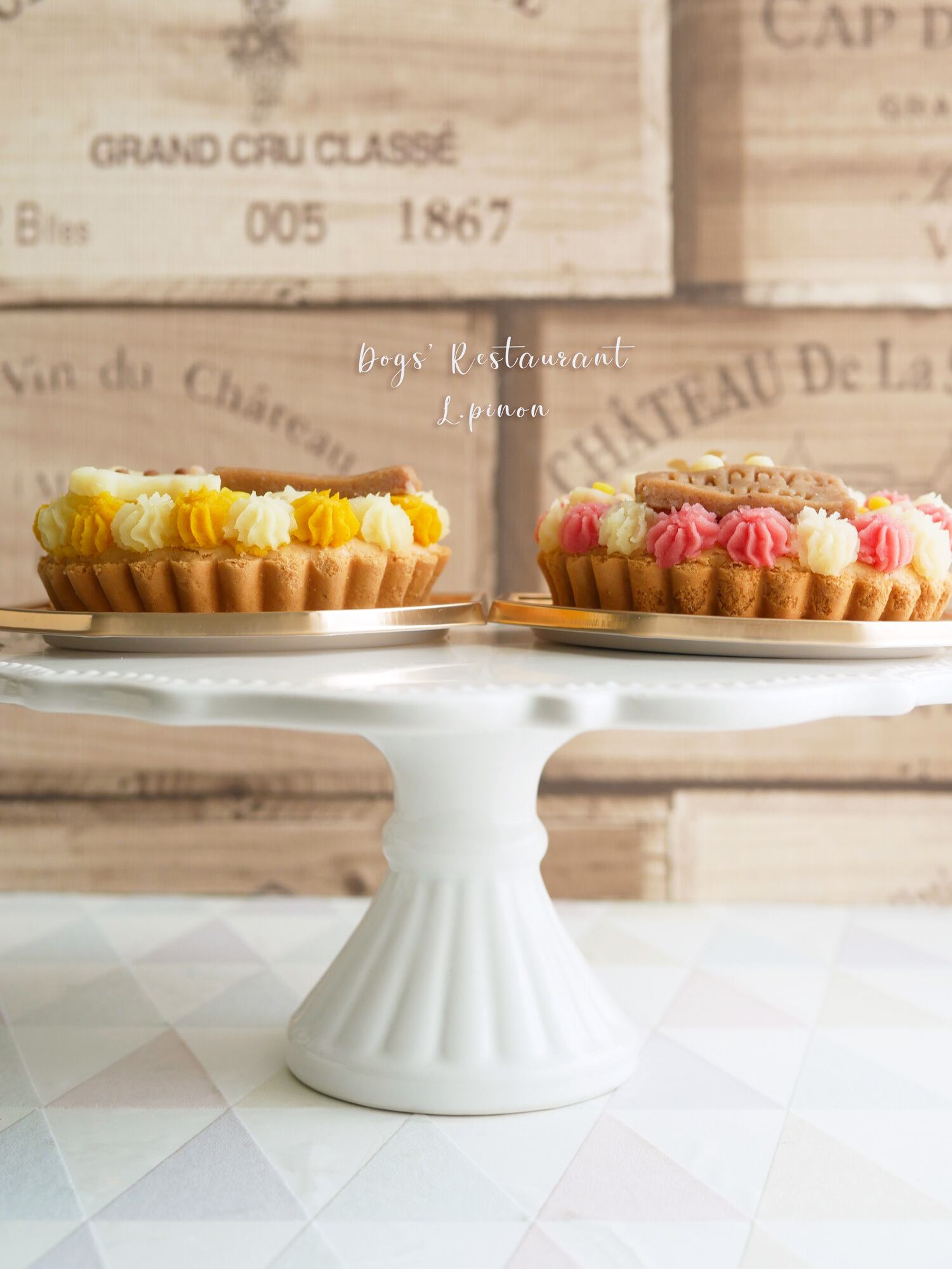 わんちゃんがハッピーバースデーを掲げた、新しいケーキの登場です。