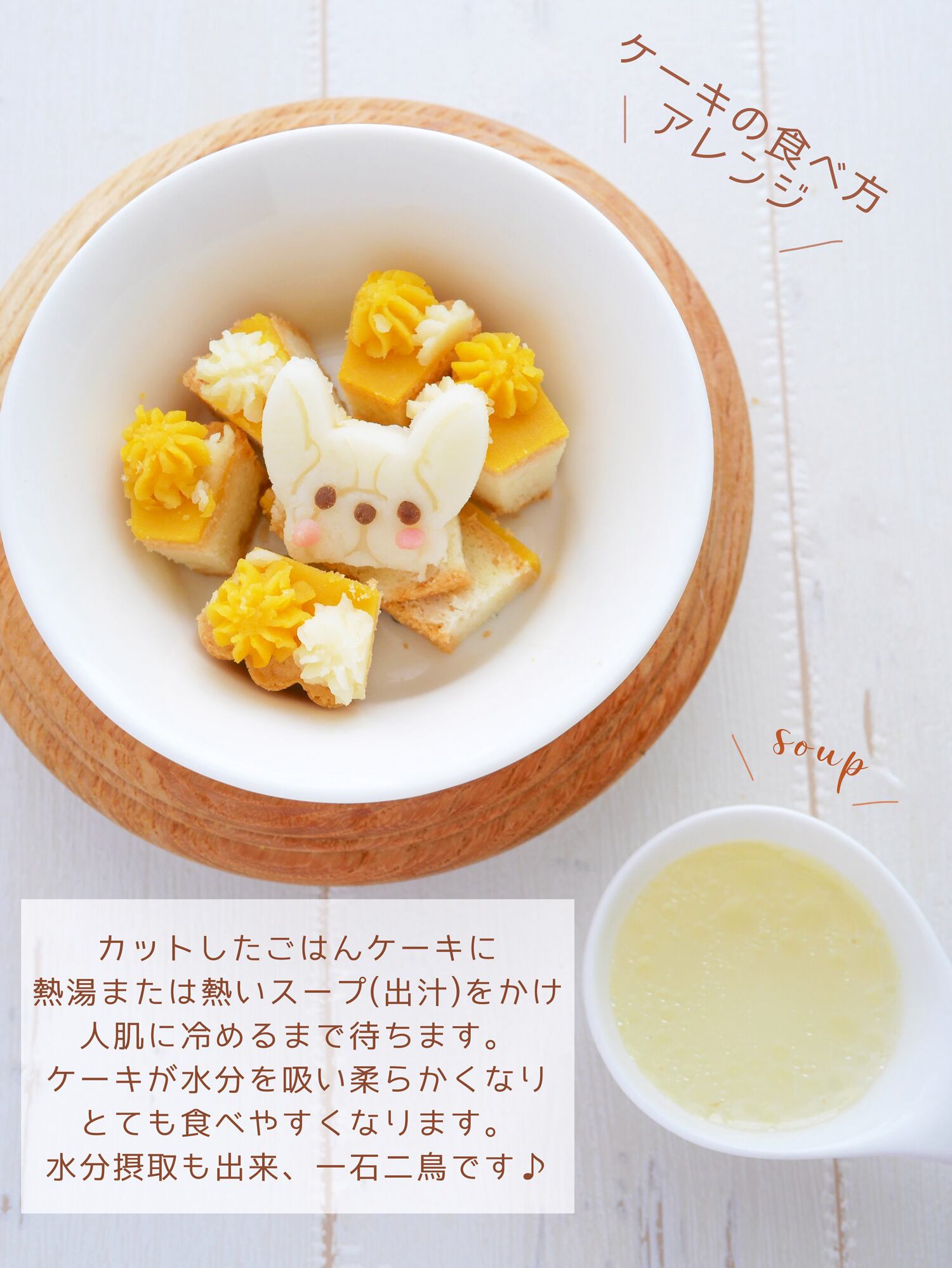 ケーキが水分を吸い、とても柔らかく食べやすくなります。